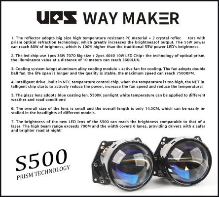 7. Kecerahan lensa LED baru S500 dapat mencapai tingkat kecerahan yang sebanding dengan Laser. Jarak lampu jauh melebihi 700M dan lebar cahaya yang mencakup 6 jalur, sehingga memberikan jalan yang lebih terang dan lebih aman bagi pengendara saat malam hari.